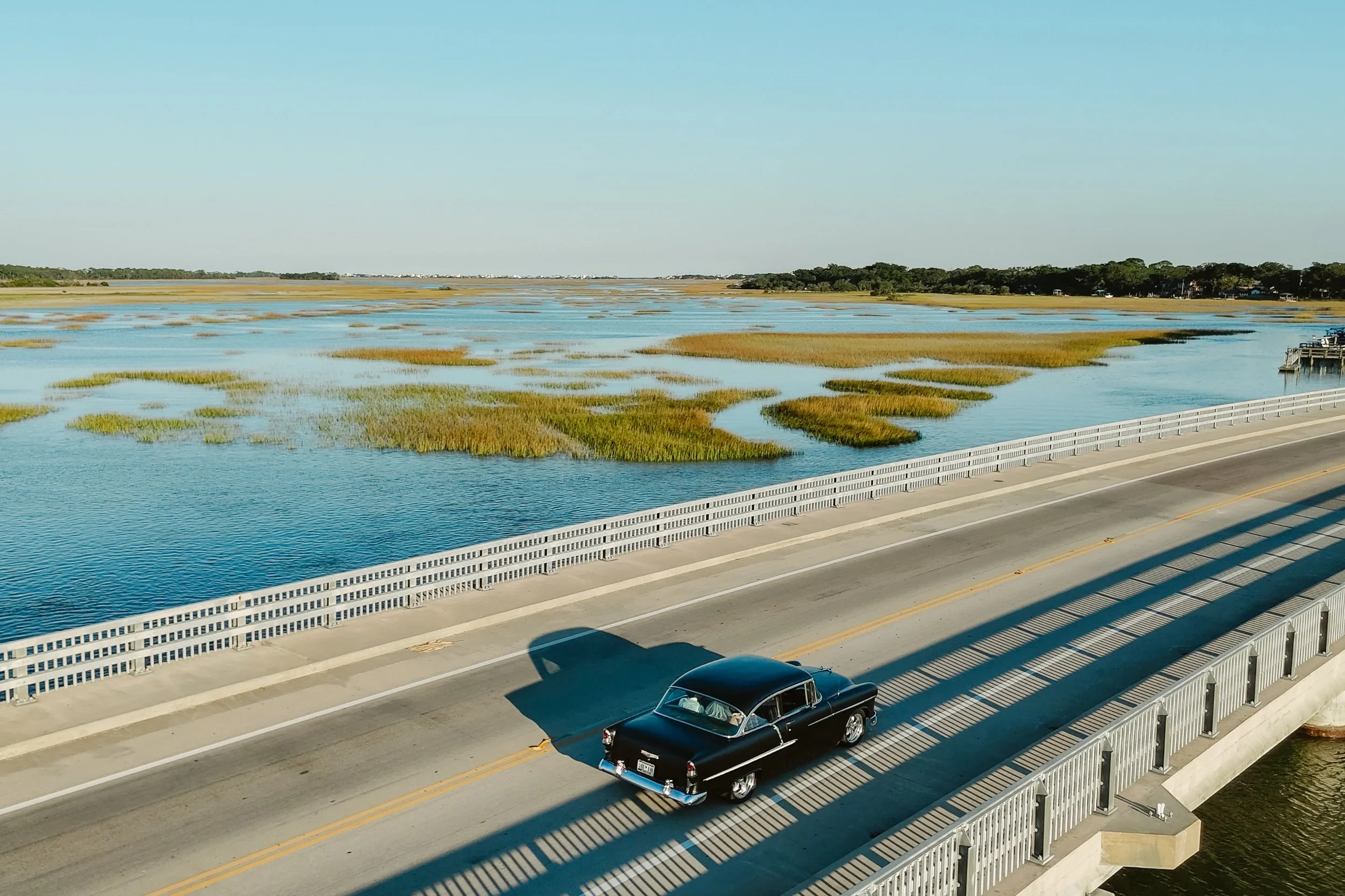 In the heart of downtown Charleston, Gabby and Jacob’s wedding at St. Luke’s Chapel blended timeless tradition with the most joyful celebration. After the ceremony, guests followed the newlyweds to Crosby’s Fish & Shrimp on Folly Beach, where a sweet reception awaited on the dock. The day was filled with laughter, love, and the most perfect weather, as family and friends toasted the couple against the backdrop of a stunning sunset on the water. Fun details like their vintage getaway car and Gabby’s breathtaking ballgown added personal charm, creating a day that was both classy and carefree.